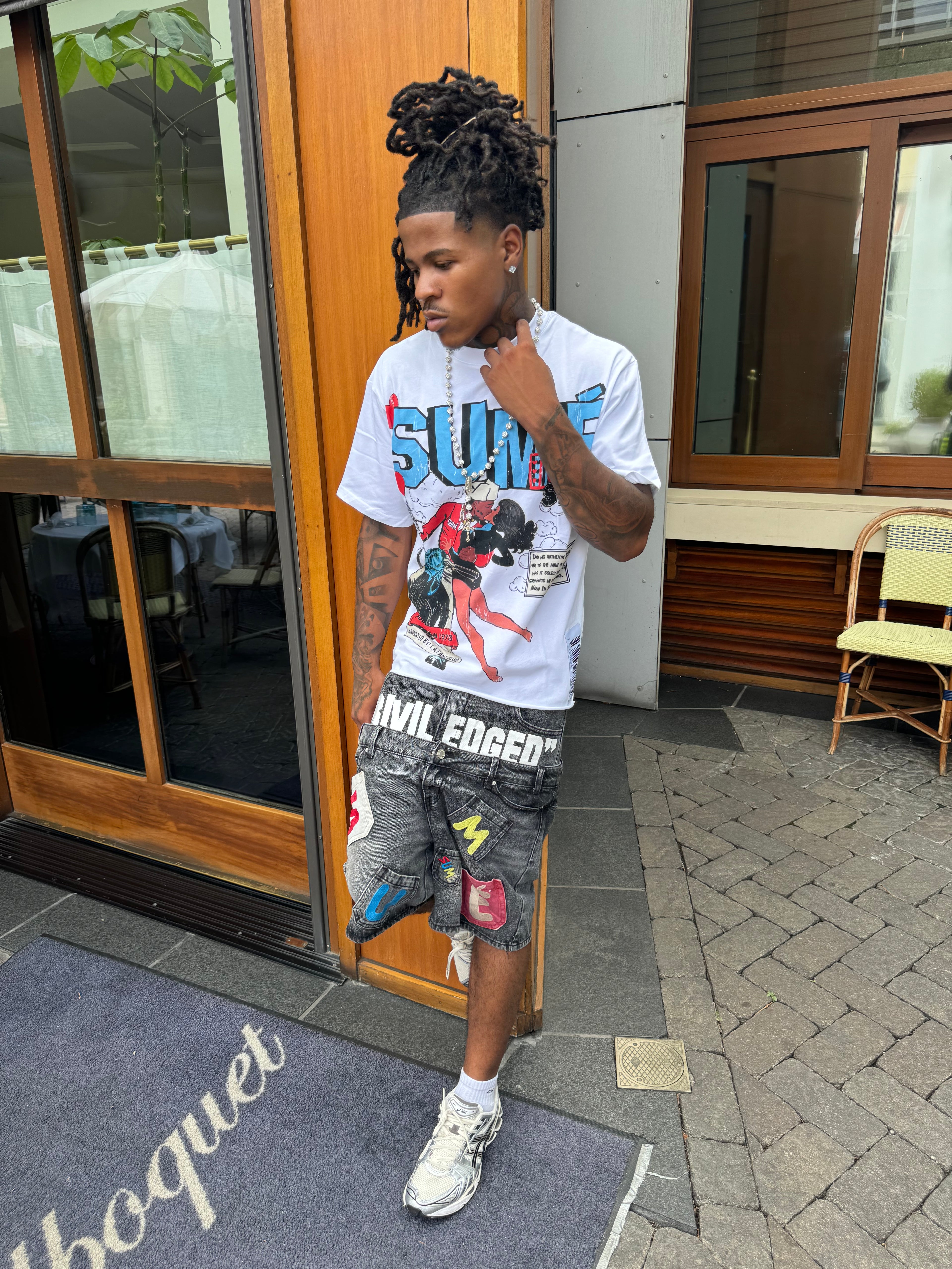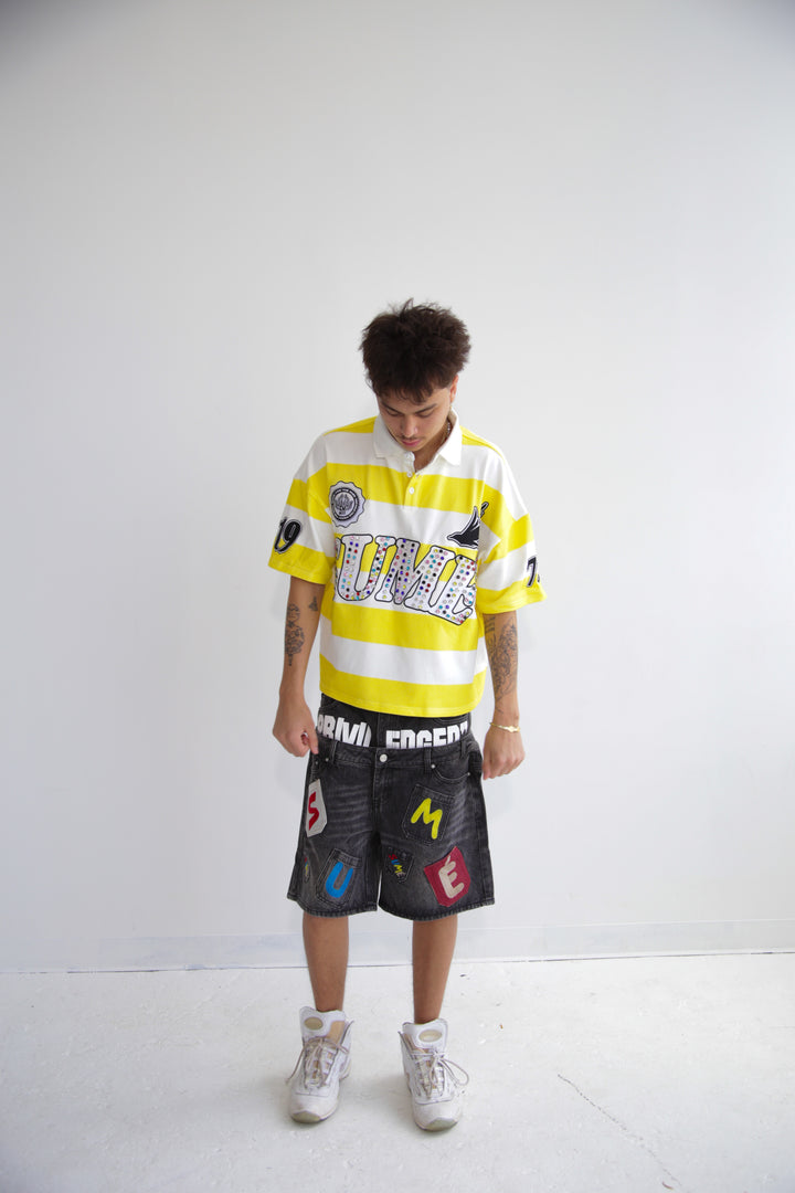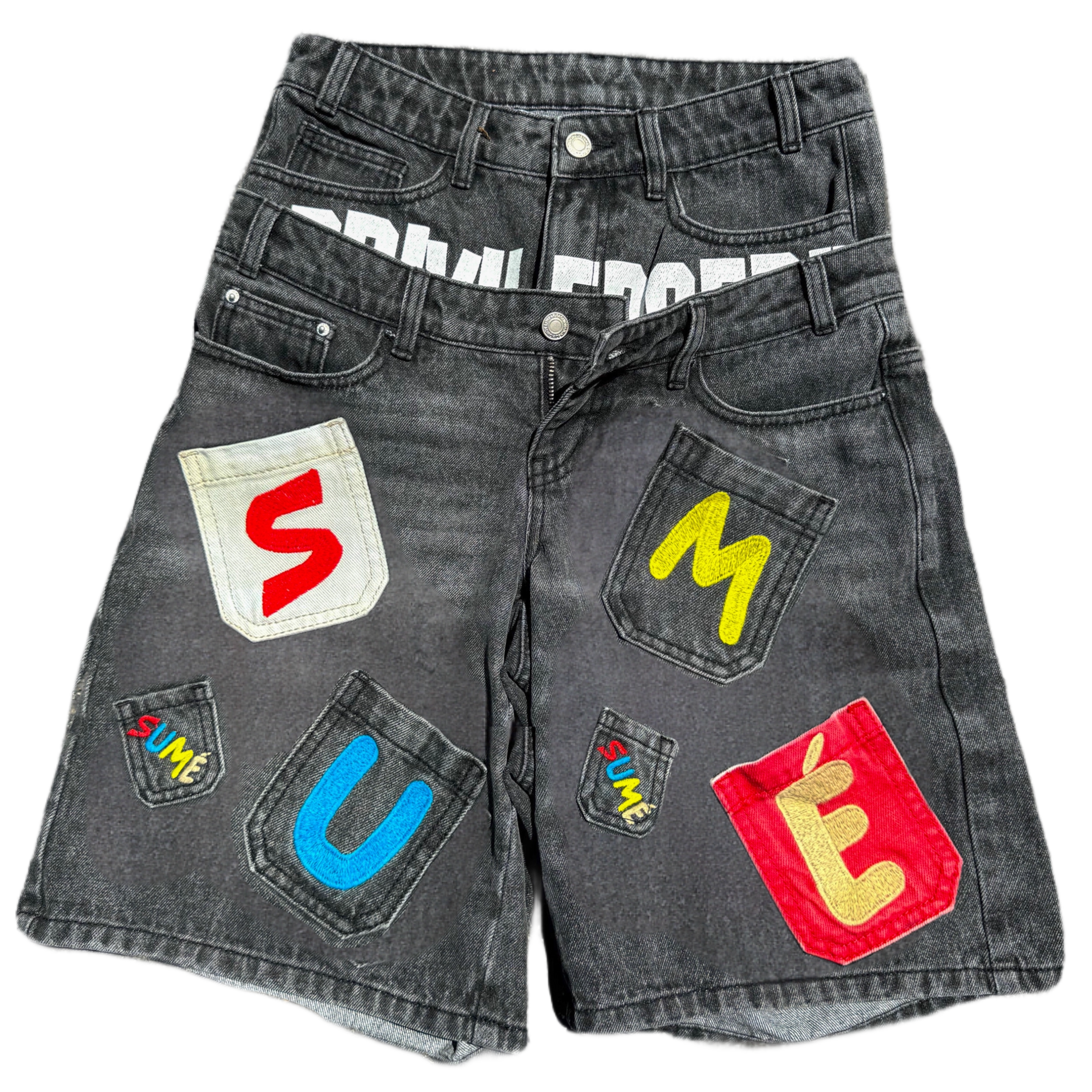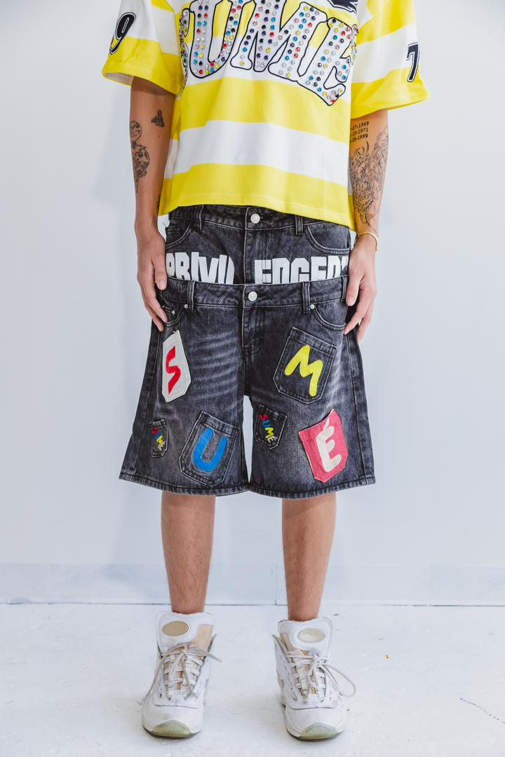 Design: Double-waisted construction with 10 functional pockets and colorful letter appliqué